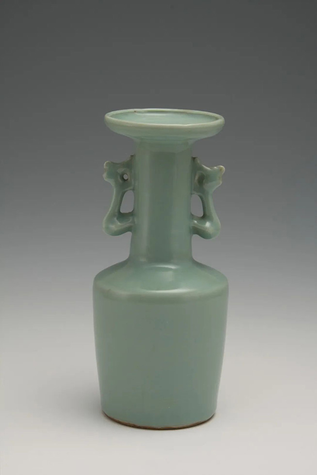 粉青釉凤耳瓶,系南宋龙泉窑青瓷精品,属国宝级文物。凤耳瓶是龙泉窑所特有的器物和经典瓶式,粉青釉是龙泉窑青瓷发展到高峰的两个釉色之一。该器物造型规整优美,精良的胎质和凝厚如玉般的粉青釉达到“青如玉,明如镜,声如磬”的境界。1998年入选中国邮政部发行的四枚套邮票《中国陶瓷·龙泉窑瓷器》,参加了众多文物精品展览,甚至还远渡他国参展。