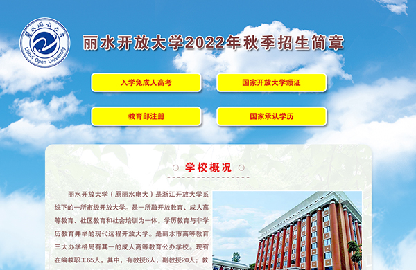 读大学、享补贴!丽水开放大学秋季招生了丽水开放大学(原丽水电大)是浙江开放大学系统下的一所市级开大。是一所融开放教育、成人高等教育、社区教...2022-07-27