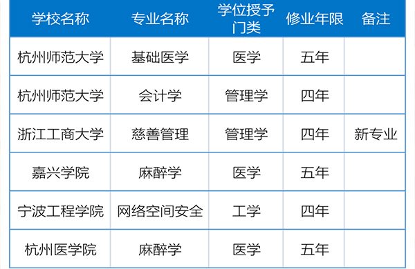 新增本科专业点66个、撤销51个,浙江高校专...近日,教育部公布了2021年度普通高等学校本科专业备案和审批结果,新增1961个专业点,撤销804个专业点,31种...2022-03-01