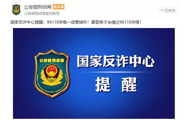 国家反诈中心提醒: 96110来电要接听!国家反诈中心提醒:96110来电一定要接听!真警察才会通过96110来电!2020-09-22
