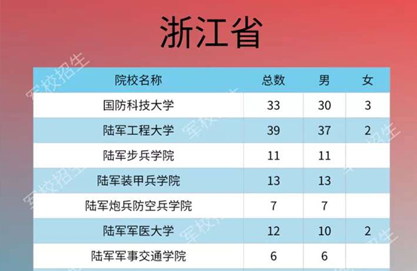 招生355人!军队院校在浙招生即将启动军校招生对象为参加今年普通高等学校招生全国统一考试的普通高中应届、往届毕业生。考生须年龄不低于17周岁...2020-07-28