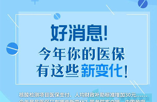 好消息来了!今年你的医保有这些新变化!核酸检测项目医保支付、人均财政补助标准增加30元.....今年居民医保又有哪些新变化?2020-06-30