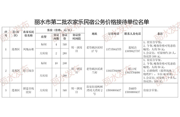 丽水第二批农家乐民宿公务价格接待单位名单为了打响“丽水山居”品牌,扎实推进农家乐民宿经济稳健发展,在公布第一批71家农家乐民宿公务价格接待单位...2020-06-30