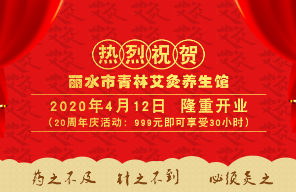 丽水青林艾灸养生馆成立20周年乔迁新址青林艾灸养生馆,由丽水人“周青林”女士20多年前在丽水市区创立,发展由开始初“公益服务”再向“市场需求...2020-04-12
