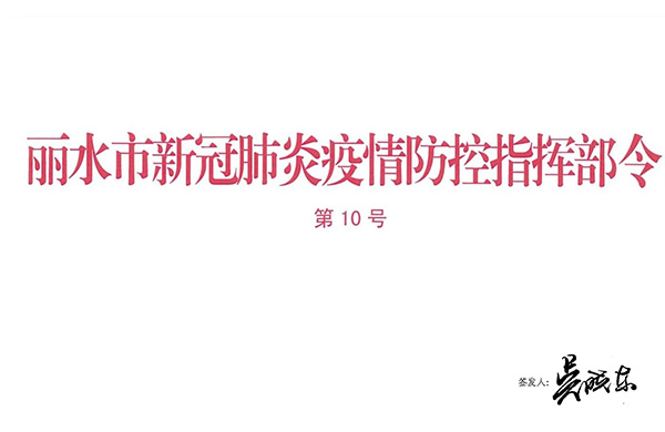 丽水市新冠肺炎疫情防控指挥部令(第10号)新冠肺炎疫情发生以来,丽水籍海外华侨华人大爱无疆、星夜兼程、慷慨支援、捐款捐物,有效改善了我市医疗防...2020-03-05