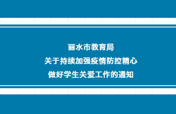 加强疫情防控,精心做好学生关爱事项通知为深入贯彻浙江省基础教育课程改革联席会议暨 2020 年度工作视频会议精神,现就持续加强疫情防控,精心做好...2020-03-09
