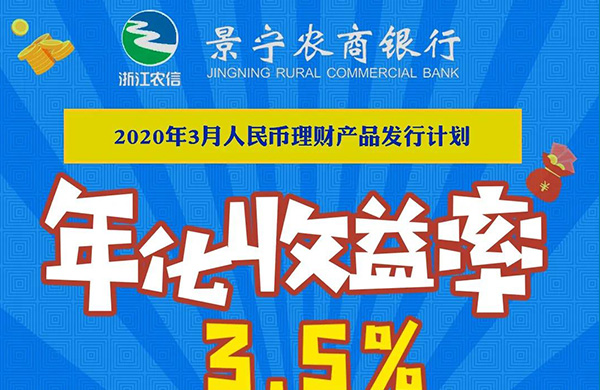 景宁农商银行3月人民币理财产品发行计划首次购买的客户需本人持身份证件到景宁农商银行辖内营业网点办理风险测评后才能购买。已经签约购买过的老客...2020-03-09