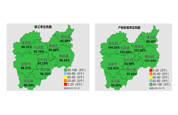丽水复工复产图完美吻合产能恢复率全省第一2月29日,丽水全市产能恢复率94.86,列全省第一;全市企业复工率96.50,列全省第四;复工图、复产图双图均处...2020-03-03