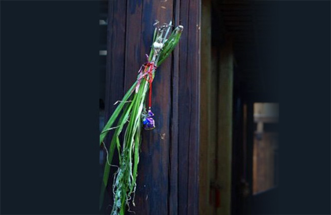 求吉祥:一般人也有在房屋前后栽种艾草,求吉祥的习俗。还有民间也有在端午时贴“午时联”,它的作用和灵符一样,有些午时联上有下列的句子“手执艾旗招百福,门悬蒲剑斩千邪”。