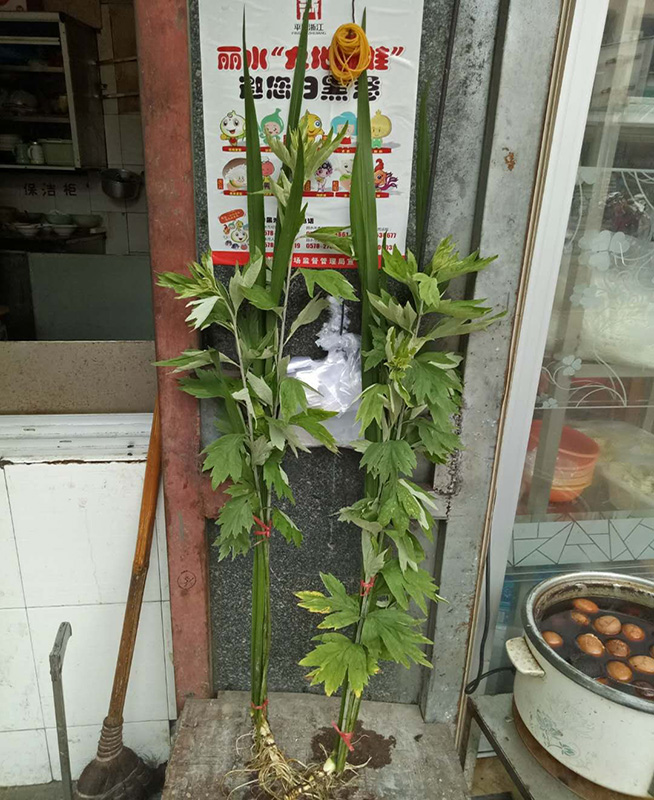 招百福:艾草代表招百福,是一种可以治病的药草,插在门口,可使身体健康。在我国古代就一直是药用植物,针灸里面的灸法,就是用艾草作为主要成分,放在穴道上进行灼烧来治病。有关艾草可以驱邪的传说已经流传很久,主要是它具备医药的功能而来,像宗懔的《荆楚岁时记》中记载曰“鸡未鸣时,采艾似人形者,揽而取之,收以灸病,甚验。是日采艾为人形,悬于户上,可禳毒气。”一般人也有在房屋前后栽种艾草,求吉祥的习俗。
