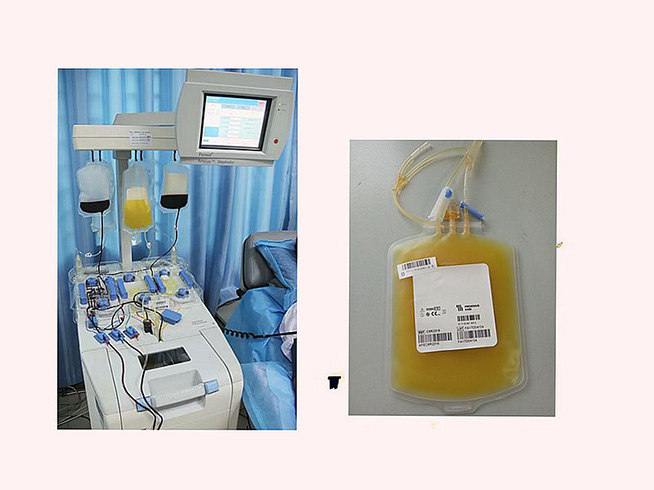 献成分血,最常见的一种方式是献血小板。即将献血者的血液采入到一个一次性的、无菌的密闭管路中,此套管路通过全自动血细胞分离机的处理,将需要的成分 (血小板)收集,其他成分还输给献血者的过程。