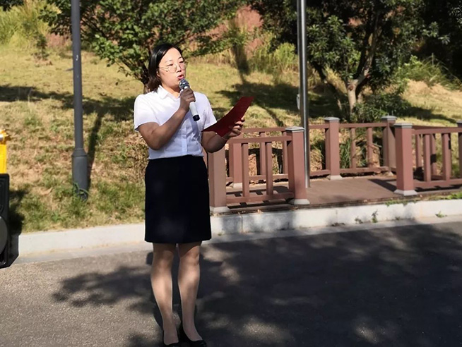 校长周香娣代表全体教师致辞。作为当代青少年,我们可以为祖国做些什么呢?周校长对同学们提出了两点期望:首先要树立目标,其次要行动起来。这,就是为祖国做贡献!