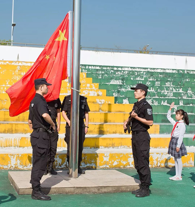 为了让学生从小树立保家卫国远大理想,学校特邀请松阳县巡特警警官跟我们师生一起举行隆重的升旗仪式,从他们整齐的步伐、挺拔的身姿、坚毅的眼神中,我们对信念、担当、奉献有了新的理解。蓝天白云,国歌嘹亮。我们由衷感到骄傲、自豪!