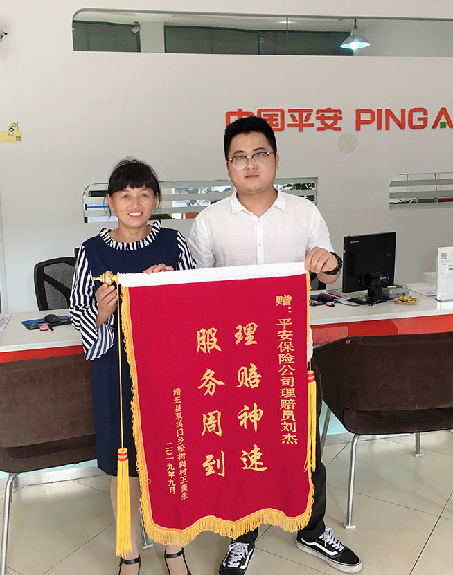 10月11日早上,客户在繁忙的工作中抽出时间,赶到遂昌平安产险门店,特意送上“理赔神速、服务周到”的锦旗,以示感谢!(供稿/丽水平安产险)