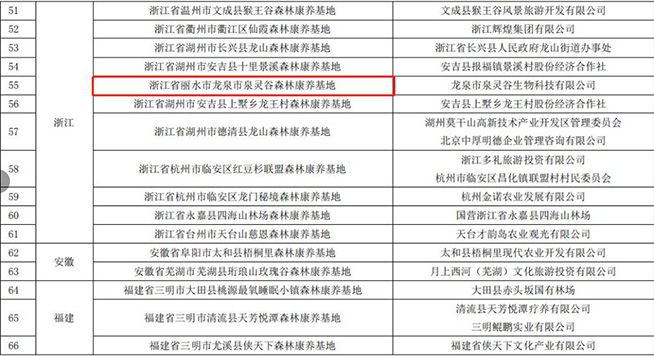 近日,中国林业产业联合会公示2019年全国森林康养基地试点建设单位名单,龙泉市泉灵谷森林康养基地被认定为“2019年全国森林康养基地试点建设单位”。