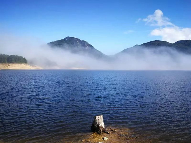 景宁上标湖位于海拔千米之上的景宁畲族自治县景南乡境内,距离景宁县城68公里,像一颗璀璨明珠镶嵌在浙南高山之巅。上标湖湖域面积为0.8平方公里,三面围山,岸线蜿蜒,玉盆般的湖形宛如一朵盛开的雪莲花,风姿绰约,孤傲圣洁,从不同的角度欣赏皆独立成景,上标湖其美妙形态,实属罕见。它的前身是上标电站的蓄水库,是华东地区海拔最高、水头落差最大的中型水库。