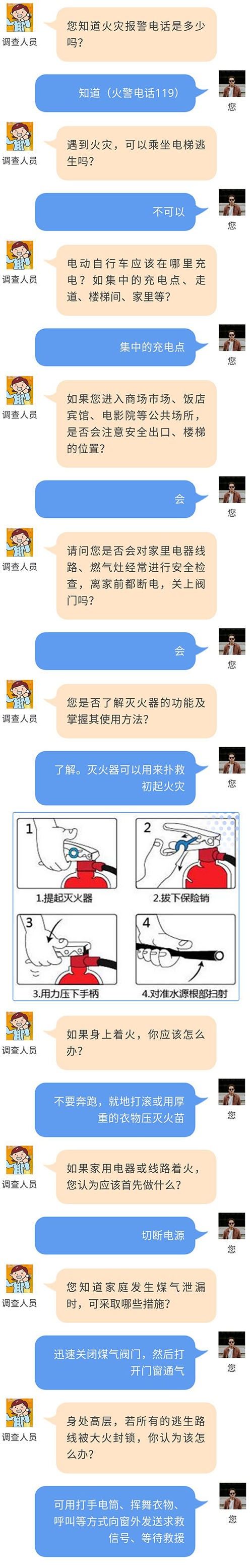 最近,面向全丽水市进行的消防安全知晓率问卷调查,目的是了解群众对消防安全防范意识、火场自救逃生知识、扑救火灾的技能的掌握情况,普及消防安全知识。当您接到“12340”的电话时,请您代表莲都耐心细致倾听问题,并用普通话配合答题,只有答完全部问题才能算作一次有效的电话调查。