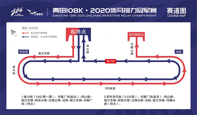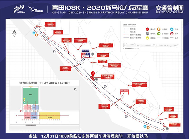 2020元月1日,有一场迎新跑,那就是青田108K·2020浙马接力冠军赛。本次比赛起终点位于刘基广场,途经临江东路、太鹤湖、网红桥等具有青田特色的风光及地标建筑,将青田代表性的风光都浓缩在这3.6公里,将青田冬日的旖旎带给每一位参赛选手。