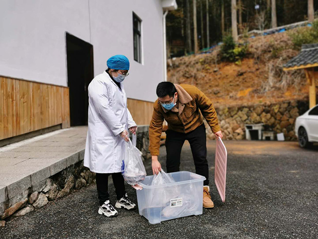 战“疫”面前,我是职场“老人”我在前! 尤加撑,一名在白云尖科教中心工作18年的职场“老人”。疫情初发时,他还在景宁县城休年假,待他一听到钟南山院士关于新冠肺炎会人传人的定论之后,他意识到问题的严重性,便毅然决然地要回到自己的岗位,履行自己的职责。此时,县城客运大巴已经停运,但这阻挡不了他为国家作奉献的心。他说服妻子充当自己的驾驶员,于当日即回到了工作的地方值班。他说:“我虽不懂相关疾病救援专业知识,也不懂如何疏导隔离人员心理情绪,但我是最了解隔离点的地理以及工作环境的,此时,是白云尖最需要我的时刻,我想尽自己最大的努力,给予隔离人员提供最大的后勤保证。”一回到自己岗位,他便发现白云尖科教中心水源被堵,他立即扛着锄头,顺着管道,水池前行,查找问题源头,疏通水管,让大家有水用,有干净的水喝。