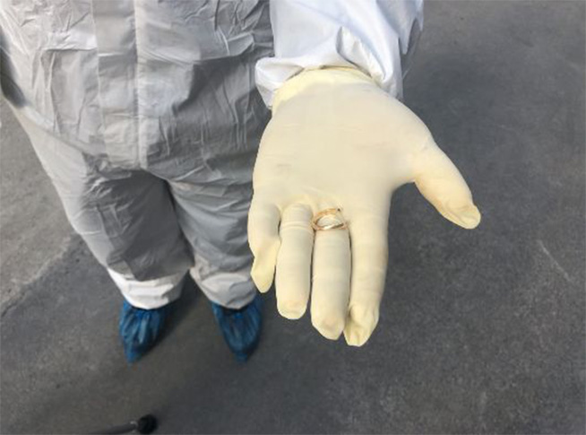 了解情况后,根据县新冠肺炎疫情防控指挥部的指示,工作人员联系了消防大队,在保证董女士和工作人员安全的前提下,经过一个多小时的努力,终于成功拿下了戒指。