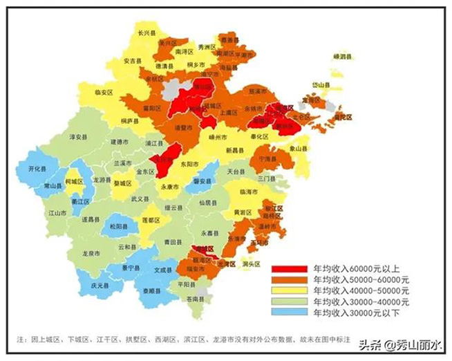 浙江居民年均收入五彩地图来了,一起看看吧
