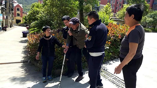 执法队员立即停车将老人扶起,向老人询问其家庭地址将老人送至家中,并嘱咐其亲属相关注意事项,才离开继续开展巡查工作。