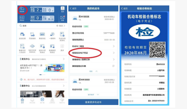 (5)对检验标志纸质凭证丢失、损毁的车辆,无需办理补领检验标志业务,可直接通过互联网交通安全综合服务平台或“交管12123”手机APP查看、下载检验标志电子凭证,如需领取检验标志纸质凭证的,可选择邮寄送达或到车管所自取。