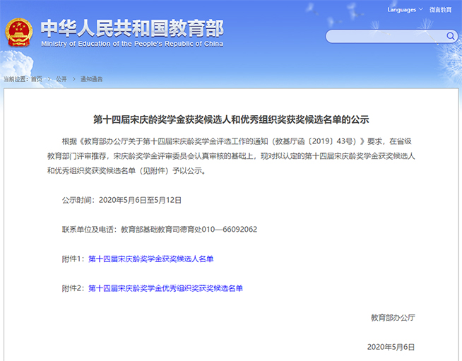 近日,教育部办公厅发布了《第十四届宋庆龄奖学金获奖候选人和优秀组织奖获奖候选名单的公示》,丽水有4名学生入选。
