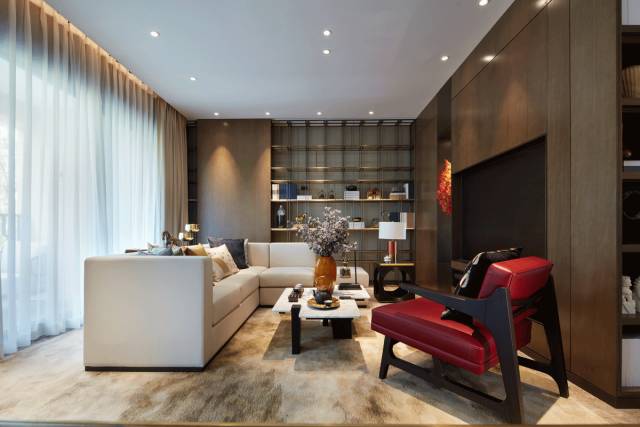 印象空间样板房,珍创设计融入湖光山色,沿用印象设计手法,以“简”为要,通过对材质、色彩、比例、造型、氛围等细节的精雕细琢,营造出质与美相互交融的生活空间。