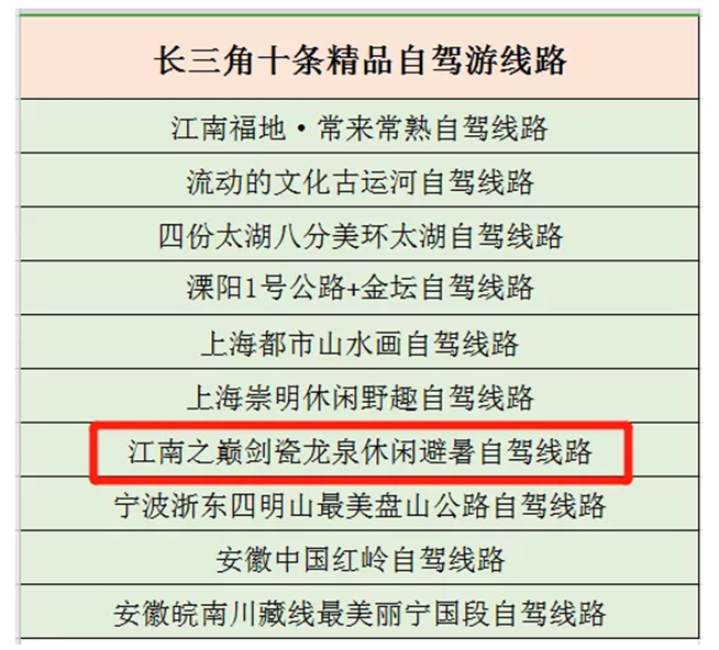 近日,首届长三角自驾游产业发展大会在常熟举行。会议评出长三角十条精品自驾游路线,其中我市“江南之巅剑瓷龙泉休闲避暑自驾路线”入选。
