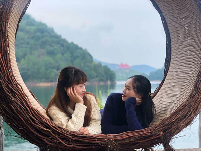 如此世外桃源,灵动的你我,坐在山水之间