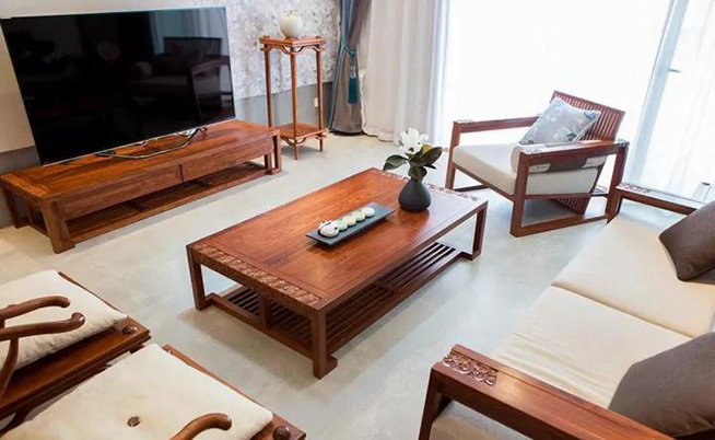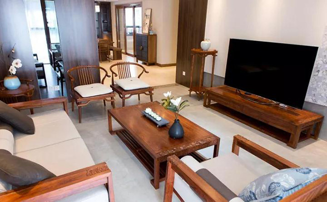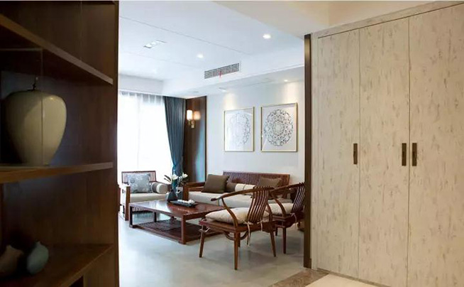 客厅空间整体设计上,采用了具有东方韵味的家具和精心选配的肌理挂画,显得有韵味,活色生香。