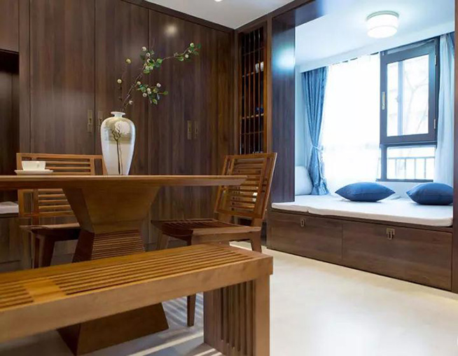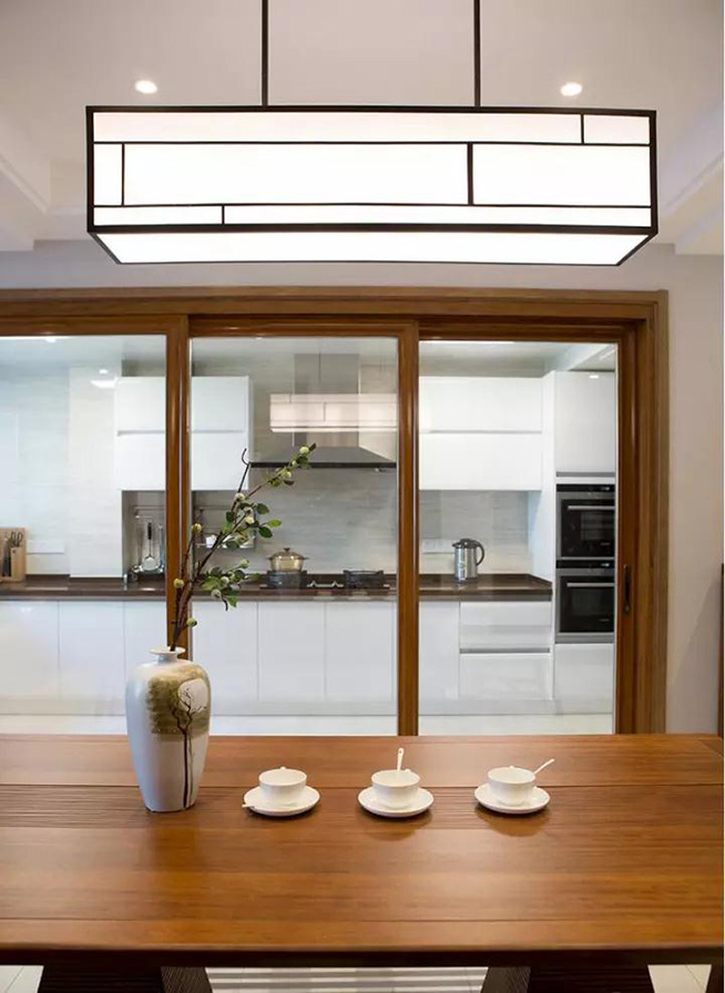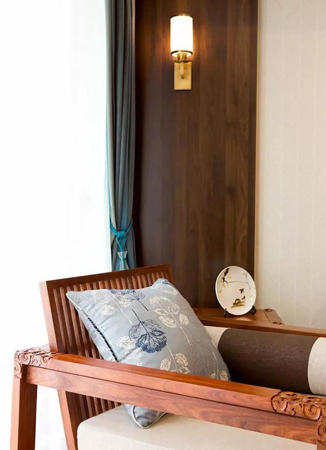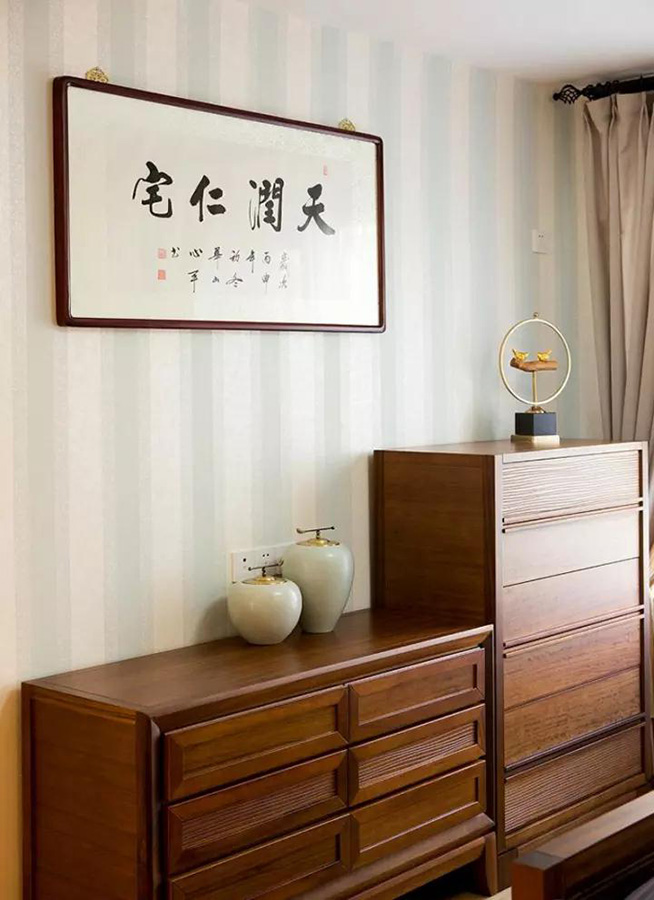 结合局部金属材质,东方韵致与现代气息相结合,木色的基调更加突显中式的稳重美。