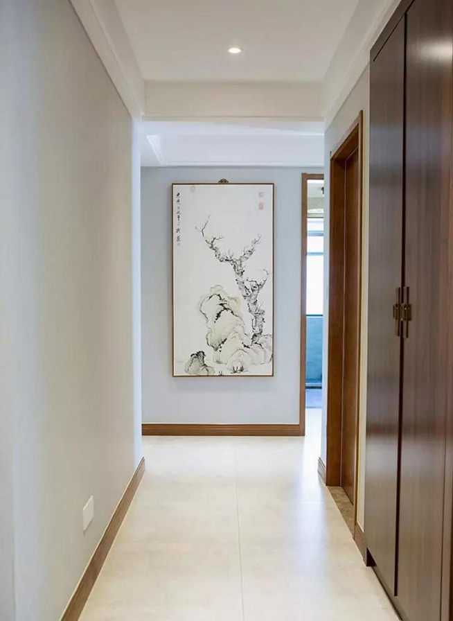 卧室的过道内,清雅的工笔画,在整洁的背景下愈发亮丽,方寸之间定格空间的明净优雅。