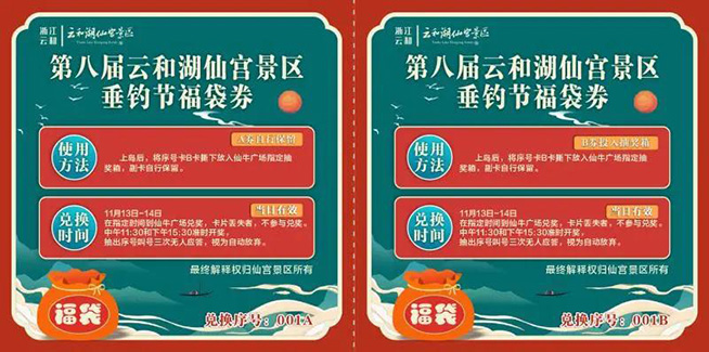 转发本文至朋友圈,凭转发记录购票即可获得垂钓节福袋券一张,在规定时间前往指定点抽奖。