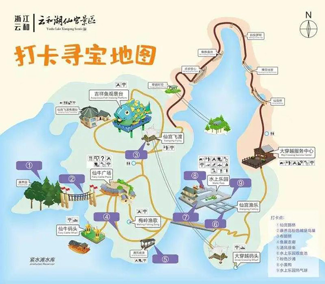 关注“云和湖仙宫景区”抖音号即可在服务台领取打卡地图一张,按照要求完成拍照打卡后,经服务台工作人员核实可领取指定奖品1份,送完即止。