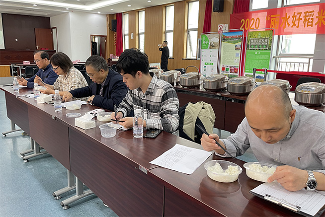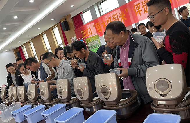 除此之外,现场还进行了大众评选“最好吃稻米”环节,九县(市、区)农业农村局工作人员、参评选手们和社会热心民众拿起了碗筷,根据口感为心仪的稻米投票。经过选手们以及观众们的品尝投票后,来自青田县云端农业开发有限公司的“鱼米情”青香丝苗获得2020“最好吃稻米”称号。