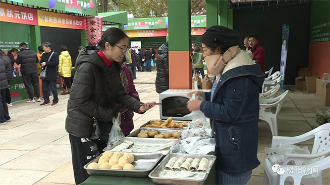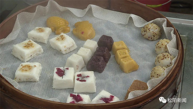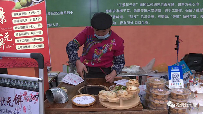 特色小吃展位松阳的特色小吃展位前更是围满了人群,大家都在排队购买。现场制作的苎麻蕨儿、状元饼、油拉饼、山粉面,刚一出炉就被抢购一空。