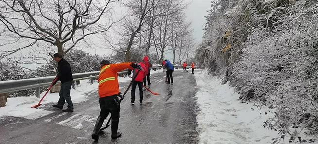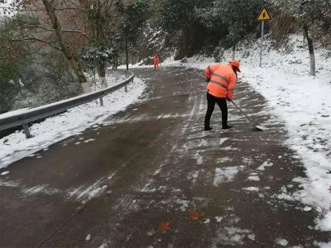 在青田黄垟乡腊黄线29K段,养护工人用铲子、镰刀等工具清理路面积雪,砍掉挂冰下垂的毛竹。同时,还加强了周边急弯、陡坡、临水、临崖等易积水、易积雪、易结冰路段的巡查力度,并在重点路段设置警示标志,提醒过往行人注意安全。