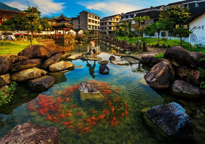 竹垟风情小镇位于龙泉市西面,距市区30公里。村居分布于横溪东西两岸,生态优美,景色秀丽。经过千年的传承和洗礼,畲族的文化和礼仪连同他们火一般的热情正在被越来越多的人接受并认同。在风情小镇,还可以观赏独具畲族风格的婚嫁表演,如果游客们想切身感受畲乡的浓郁风情,还能扮演一回畲乡"新郎"和"赤郎",体验畲乡人民的热情。