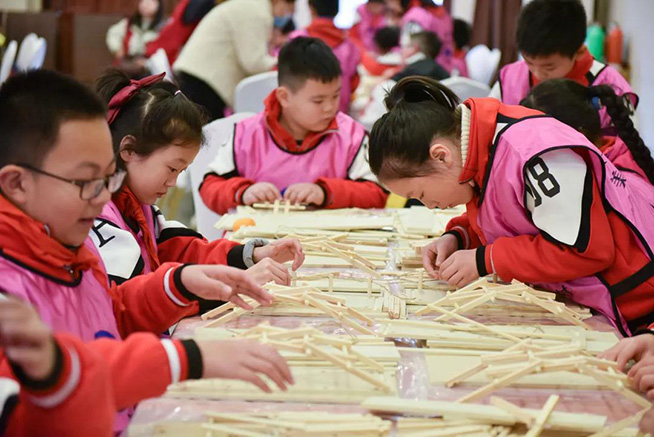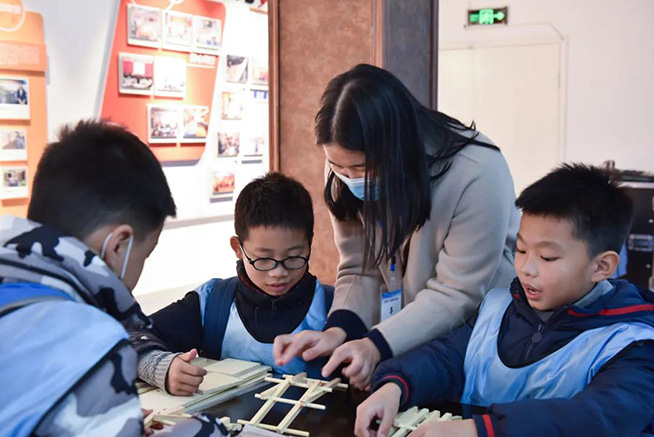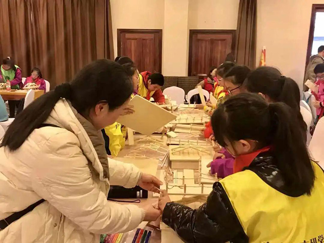 老师手把手指导同学制作模型