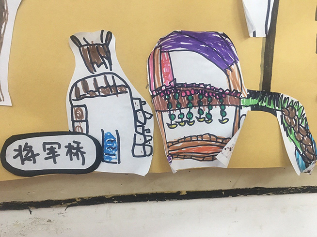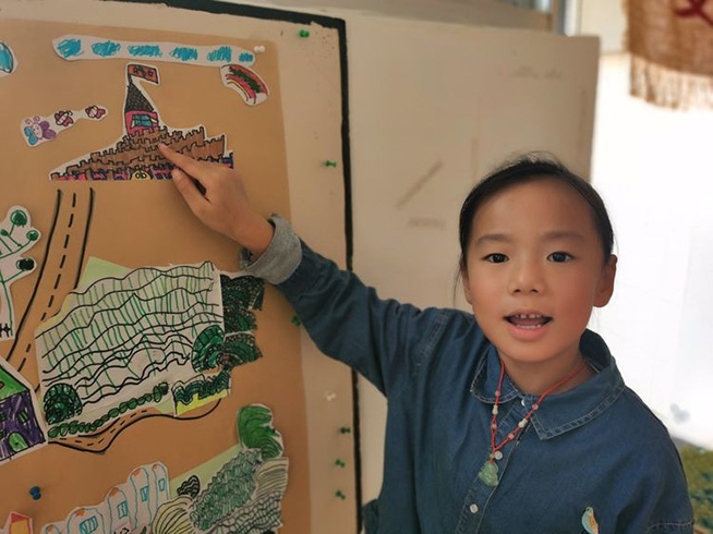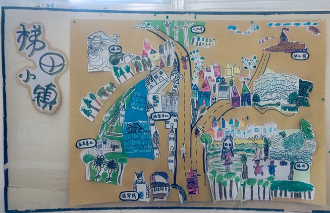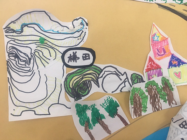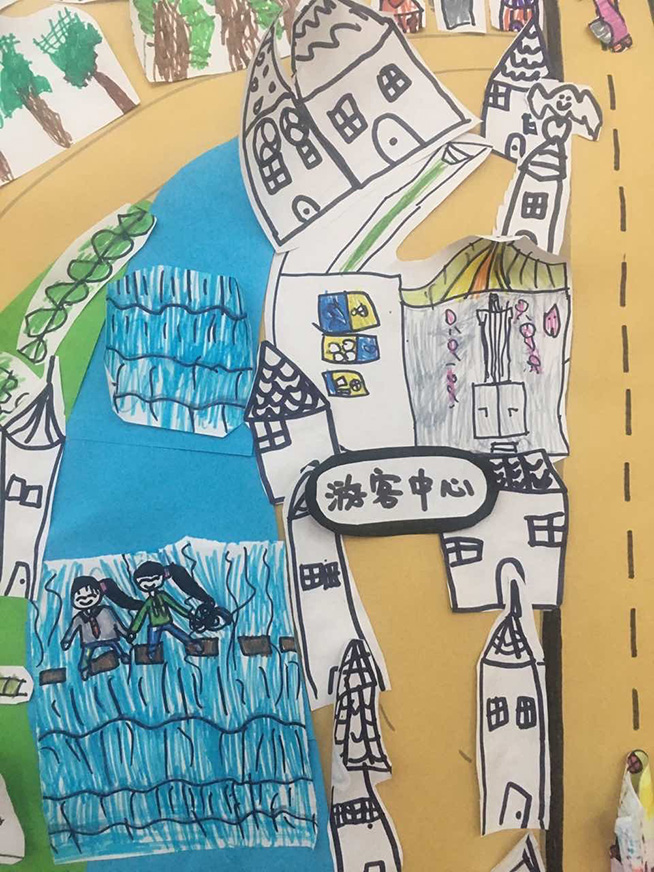 就这样,在幼儿的表述中,独一无二的“梯田小镇手绘游览图”逐渐诞生啦!在教师的引导下,幼儿从抽象的感知到方位的确认,这个过程对幼儿们来说是一个不小的挑战和提升。