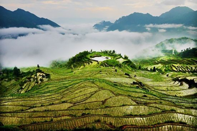 晓翰沉思着说:梯田是从山上长下来的吗?怎么会一层层的呢?