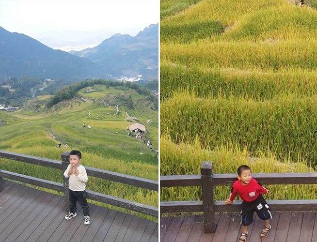 瑞瑞:我们的梯田真好玩,有稻谷和白云,站在高高的观景台上,可以看到很远很远的云和嘞。