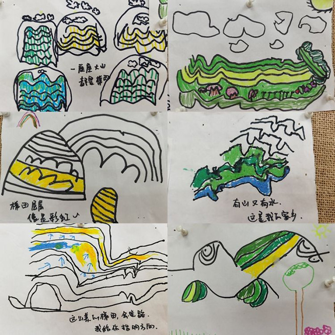 老师:你们可以把自己看到的梯田画下来,让我们也感受一下呗!