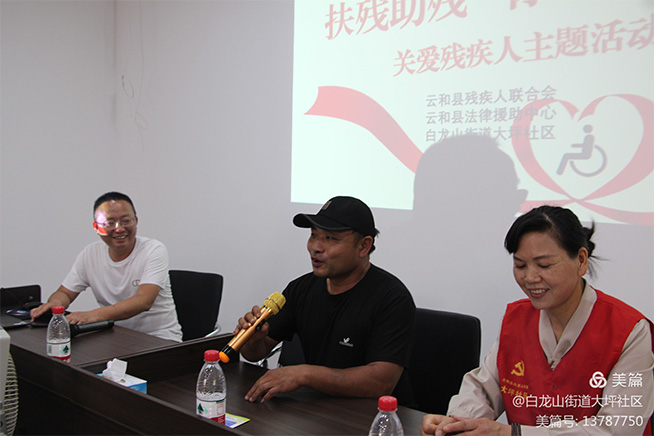 最美五月天,最真人间情。在鲜花绽放,生机勃勃的美好季节即将迎来第三十一个全国助残日。习总书记指出:“残疾人是社会大家庭的平等成员,是人类文明发展的一支重要力量,是坚持和发展中国特色社会主义的一支重要力量。”为切实做好助残扶残工作,营造关心关爱残疾人的社区风尚。5月14日上午,大坪社区联合云和县残疾人联合会、县司法局、县人民医院开展“扶残助残 你我共担”关爱残疾人主题活动。