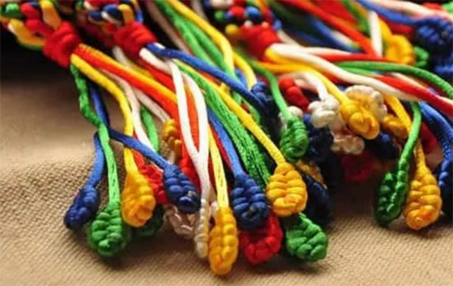 端午节拴五彩绳有保护儿童驱妖避邪之意,等到端午节后的大雨天时,将它扔入水中,随河流飘走。这样一来,烦恼、忧愁都随着雨水流走,会给你带来一年的好运。五彩绳,寓意着蕴含五方神力,可以为你驱邪除魔,祛病强体。带在手腕上好看精致的样子,也成为了端午节一道靓丽的风景线。
