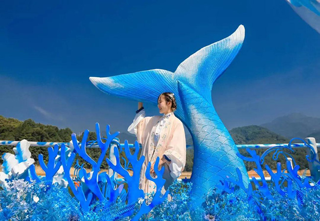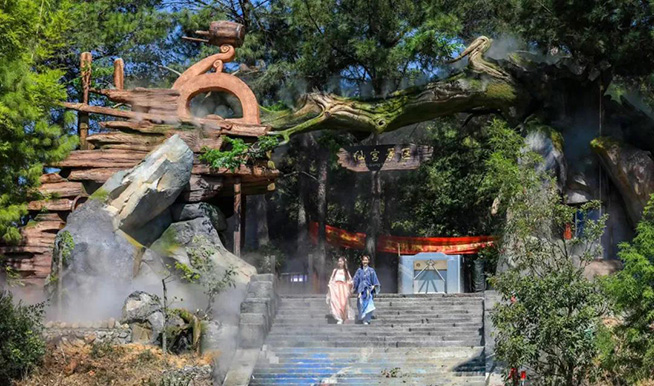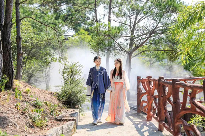 身着古风汉服来到景区游玩的你,记得来找我领取纪念品哦。