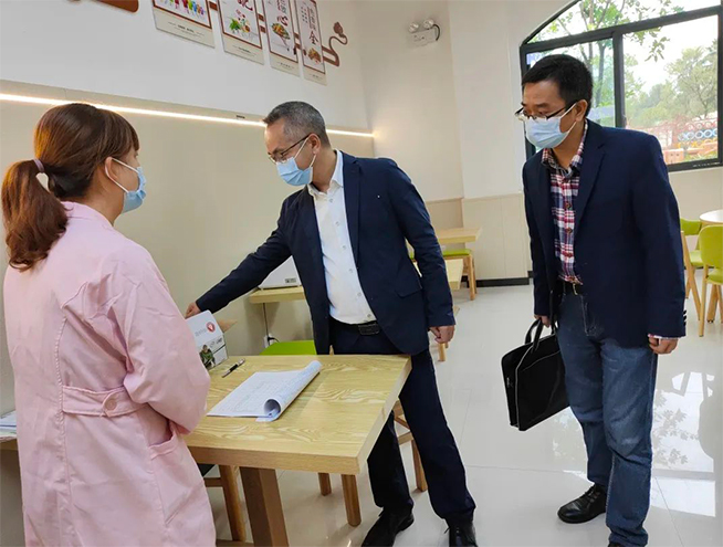 2021年11月5日上午,云和县副县长潘吉文、市场监管局领导一行到云和城东幼儿园开展“智能阳光厨房”视察调研工作。