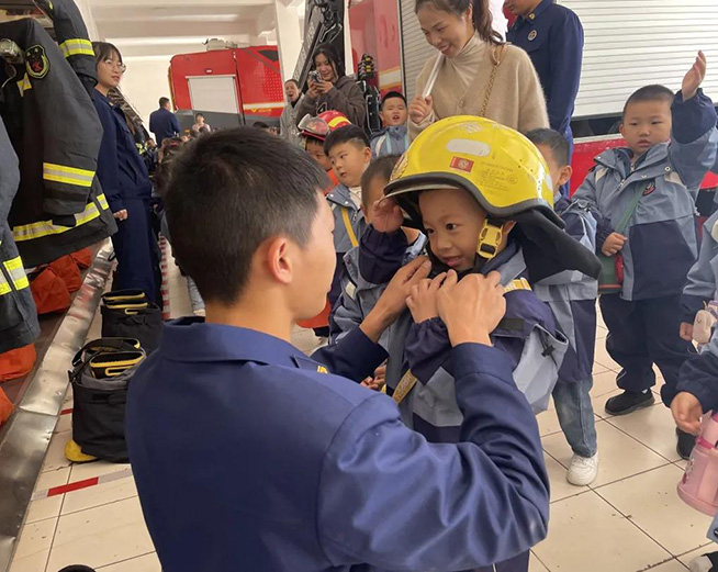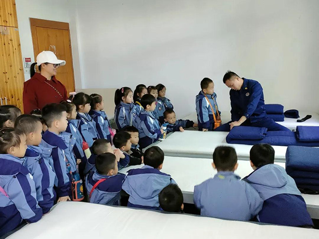 除了参观消防器械,学习消防知识外,孩子们还来到了消防员叔叔们干净整洁的生活区。消防员叔叔还教小朋友们学习叠被子的方法,看到消防员叔叔叠出四四方方的,称为“豆腐块”的被子时,都忍不住惊叹起来“哇,消防员叔叔你太棒啦!”个个都由衷地流露出他们的喜爱和敬仰之情。